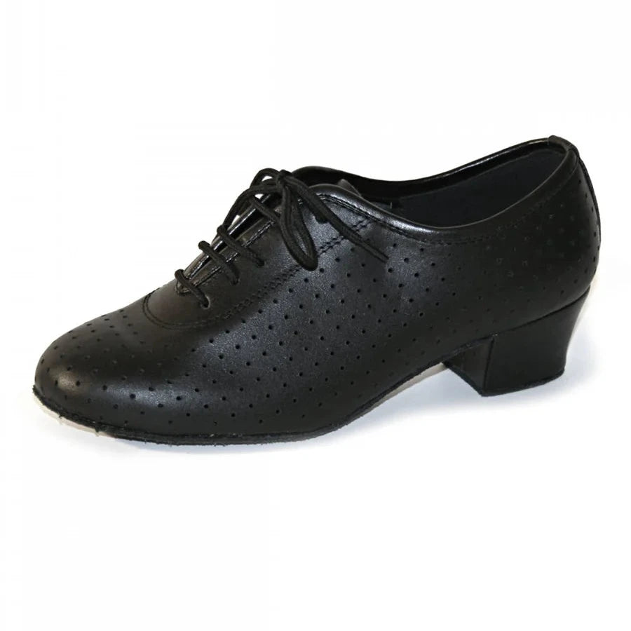 The Audrey ladies' practice ballroom shoes from Roch Valley. Made from breathable perforated black leather, the Audrey has a 1.5" Cuban heel and non-slip suede sole to offer support and comfort throughout social dance or classes. Featuring a lace-up fastening for a classic and timeless look.