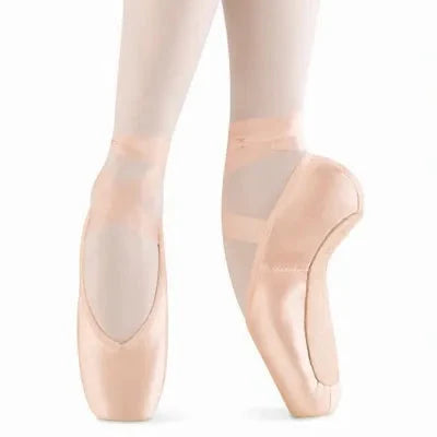 A wide platform Ballet shoe for balancing en pointe. Longer vamp and firm shank help to prevent flexible feet from bending too far over pointe. Suited to a ballet dancer with square shaped toes.