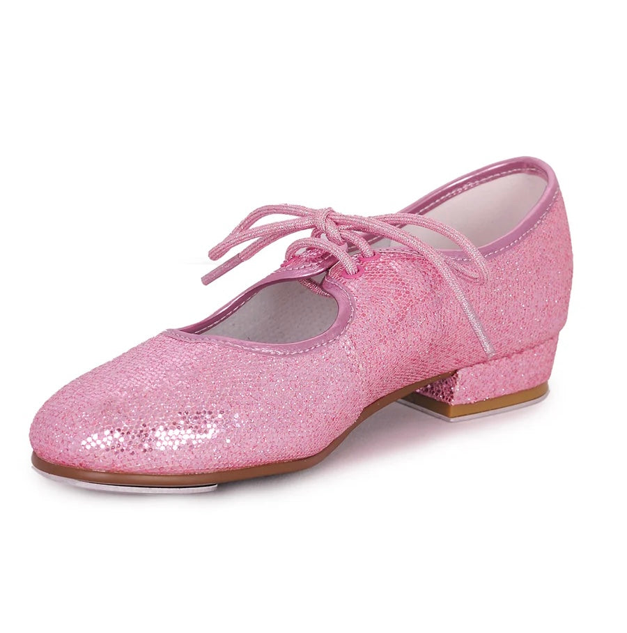 Pink Low heel Hologram tie tap with fitted toe and heel tap.